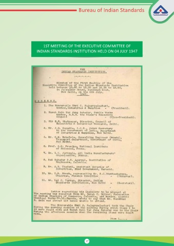 Bureau of Indian Standards 1ST MEETING OF THE EXECUTIVE COMMITTEE OF INDIAN STANDARDS INSTITUTION HELD ON 04 JULY 1947 17