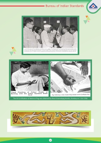 Bureau of Indian Standards The ISI Certification of National Flag was obtained by Khadi Gramodyog Kendra, Bombay on 2 Oct 1956. 32