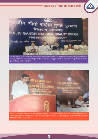 The 1st Licence Awarded by BIS under Quality Systems Certification Scheme on 25.06.1992 at New Delhi. M/s