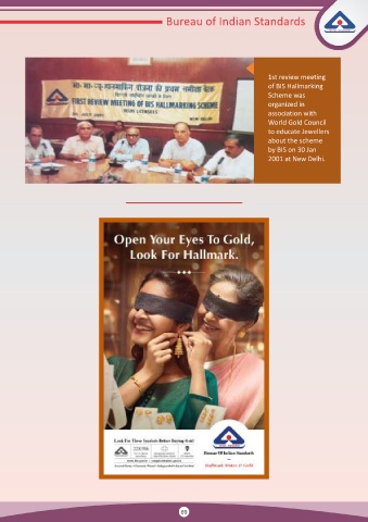 Bureau of Indian Standards 1st review meeting of BIS Hallmarking Scheme was organized in association with World Gold Council to educate Jewellers about the scheme by BIS on 30 Jan 2001 at New Delhi. 69