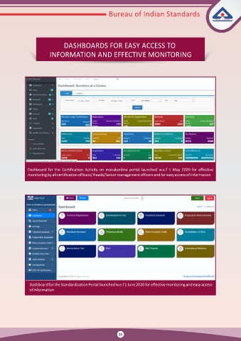 Dashboard for the Standardization Portal launched w.e.f 1 June 2020 for effective monitoring and easy access