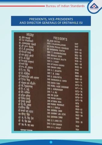 Bureau of Indian Standards PRESIDENTS, VICE-PRESIDENTS AND DIRECTOR GENERALS OF ERSTWHILE ISI 9