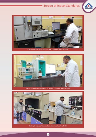 Bureau of Indian Standards Carbon Sulphur evaluation in steel, Chemical Section, NROL Water Testing (ions evaluation IS 14543), Chemical Section, NROL Testing Samples of Electric Iron, Electrical Section, NROL 149