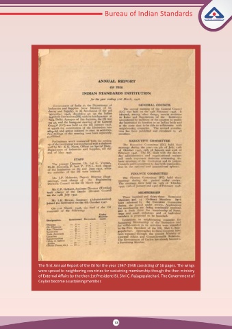The first Annual Report of the ISI for the year 1947-1948 consisting of 16 pages. The wings