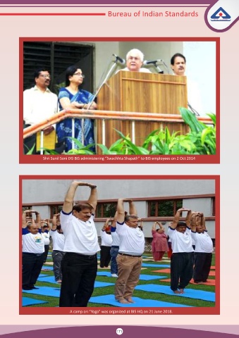 Bureau of Indian Standards Shri Sunil Soni DG BIS administering “Swachhta Shapath” to BIS employees on 2 Oct 2014 A camp on “Yoga” was organized at BIS HQ on 21 June 2018. 171