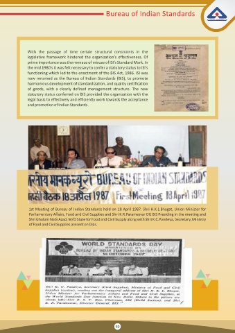 1st Meeting of Bureau of Indian Standards held on 18 April 1987. Shri H.K.L.Bhagat, Union Minister for