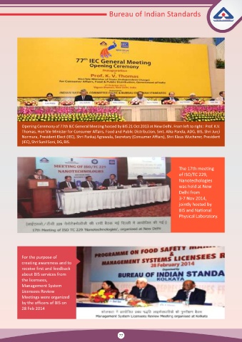 Opening Ceremony of 77th IEC General Meeting hosted by BIS 21 Oct 2013 at New Delhi. From left to right : Prof. K.V.