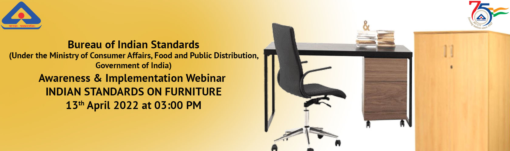 Webinar On Awareness and Implementation of Indian Standards on Furniture मंगलवार , der 12. अप्रेल 2022 1680 × 500 होम Webinar On Awareness and Implementation of Indian Standards on Furniture Webinar On Awareness and Implementation of Indian Standards on Furniture