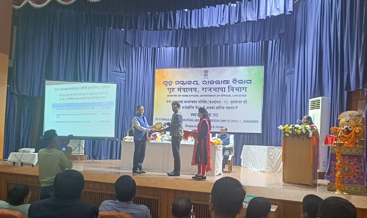 भारतीय मानक ब्यूरो, भुवनेश्वर को नगर राजभाषा कार्यान्वयन समिति, (कार्यालय-1), भुवनेश्वर के द्वारा वर्ष 2024-25 के लिए 1-10 कार्मिक वाले कार्यालयों की श्रेणी में प्रथम स्थान प्राप्त करने हेतु शील्ड से सम्मानित किया गया है।